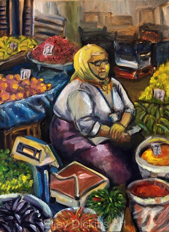Eljay’s passion now lies in painting scenes and people from her life, mainly influenced by a long-standing relationship with Turkey where Eljay has run Turkish Painting Holidays for many years now.